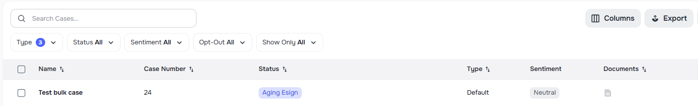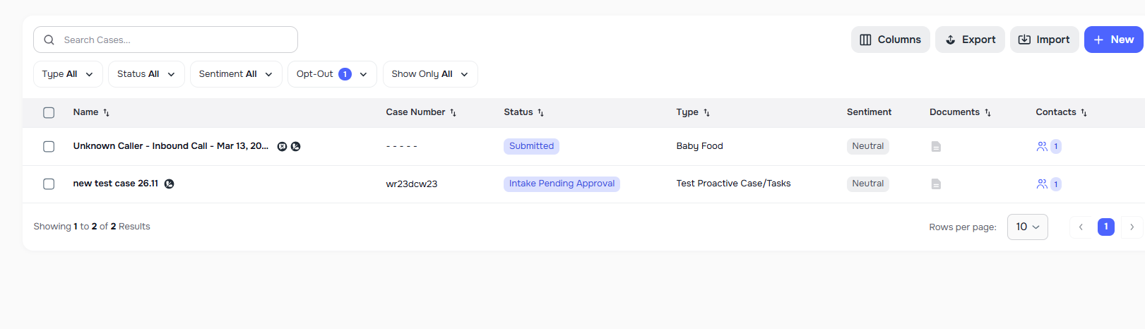 Cases and List detail pages now include Columns and Export buttons to make exporting data easier and more flexible.