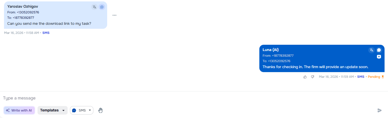 Improved user experience — when no upload links are available, the AI provides a neutral fallback message telling clients the firm will provide an update soon, rather than potentially confusing responses about missing or pending tasks