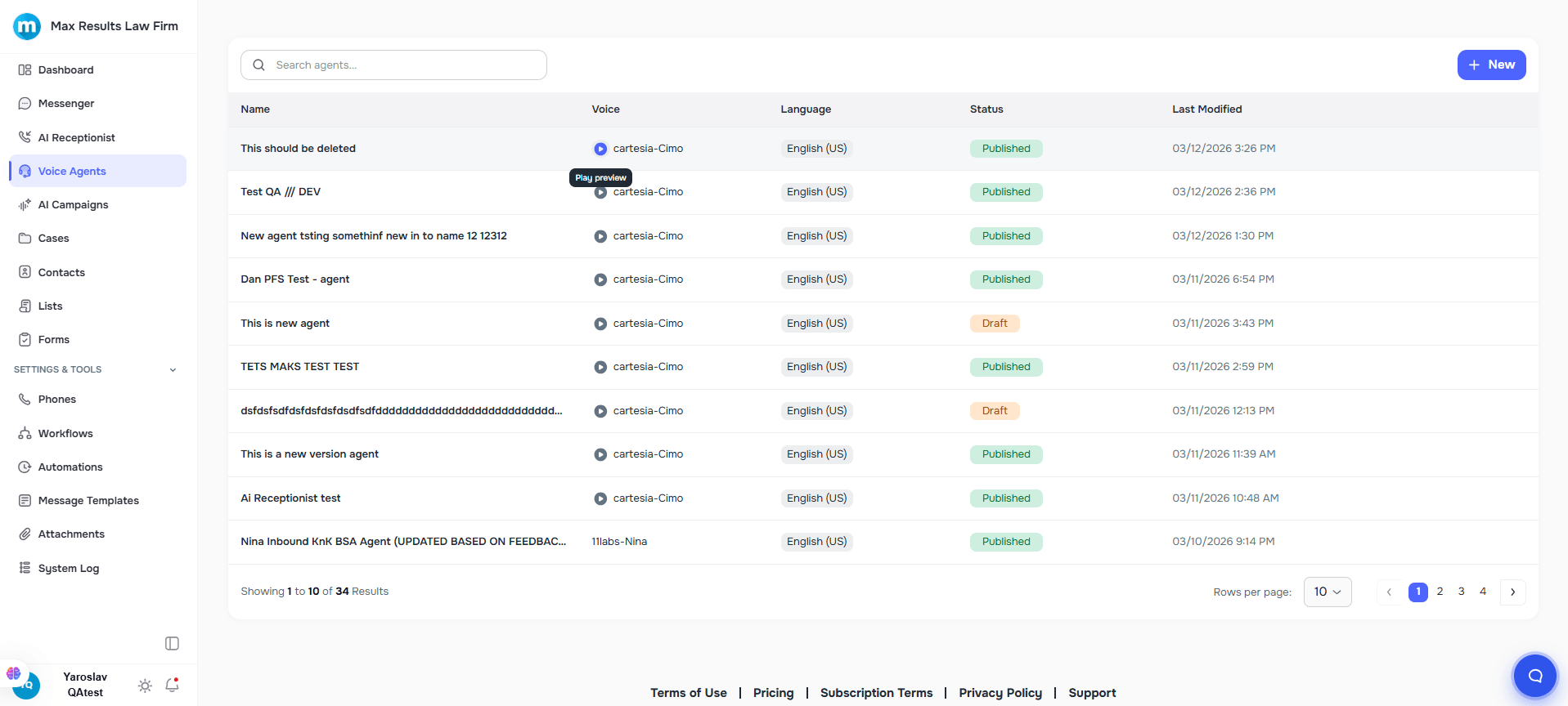 The Agent Builder list page now includes voice preview controls, allowing you to listen to agent voices directly from the list view.